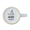 The Moomin Mug POP Moomintroll is part of the brand-new POP series by Moomin Arabia, released in 2025 and available exclusively in Japan. The POP mugs hold 0.3 litres, and the launch collection includes four character mugs: Snufkin, Moomintroll, Little My, and Snorkmaiden. On the front, Moomintroll appears with a startled expression, while on the back a crab has grabbed Snorkmaiden’s tail, and Moomintroll rushes to her rescue with a rock in hand. Inside the mug, there’s a quote typical of Moomintroll, printed in a small English speech bubble: “Oh, my goodness!” Unlike previous Moomin mugs based on Kaj Franck’s Teema design, the POP mugs are made with Irina Viippola’s 2018 Mainio shape. They are crafted from stoneware, giving the base a naturally slightly yellowish tone. On the bottom, the familiar painting Moomintroll has been replaced by painting Little My. Each POP mug comes without a sticker and is sold in its own gift box. The mugs are microwave and oven safe, but hand wash is recommended.